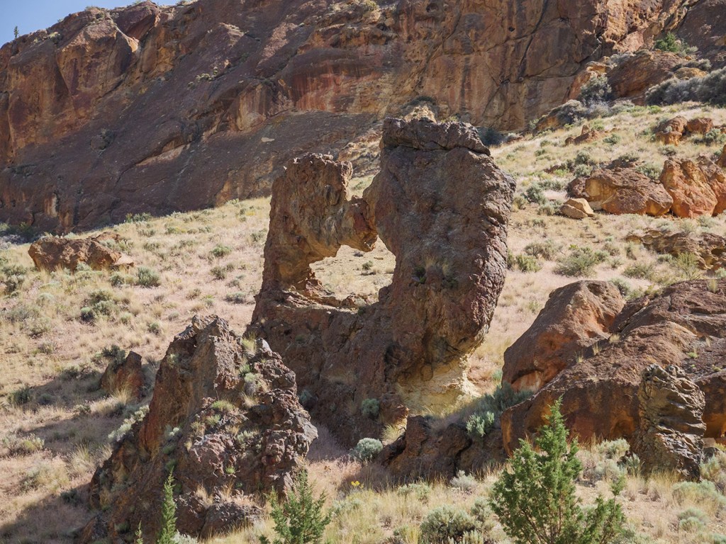 Overview: We will then travel caravan-style to the Leslie Gulch area (~1 hour drive to beginning of gulch) across the border into Oregon. We hope to make a couple of short stops with hikes and geological information and our final stop will be for lunch at the Slocum Creek Campground/Picnic Area near the Lake Owyhee reservoir.